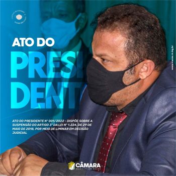 ATO DO PRESIDENTE Nº 001/2022 – DISPÕE SOBRE A SUSPENSÃO DO ARTIGO 3º DA LEI Nº 1.224