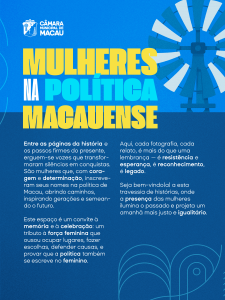 A sessão solene de entrega de títulos de cidadã macauense e da comenda 09 de setembro teve como tema as mulheres na política de Macau. Foram homenageadas mulheres que marcaram a história do nosso município, mostrando sua força e liderança no cenário político de nossa querida Macau.